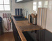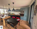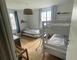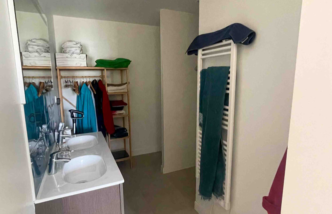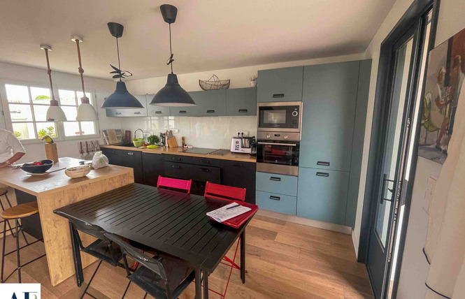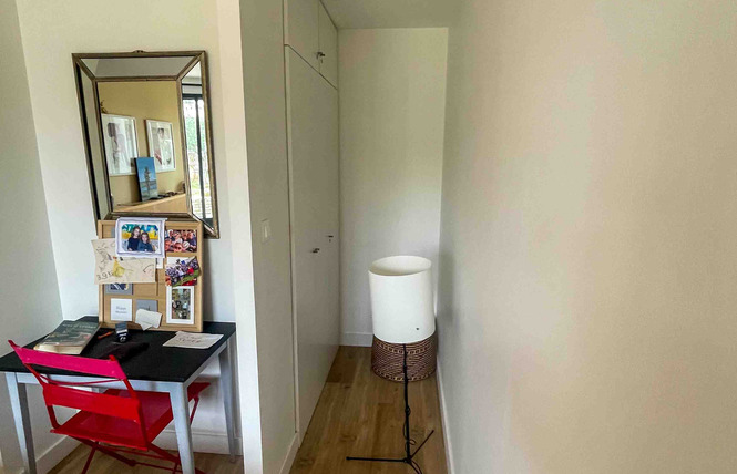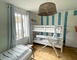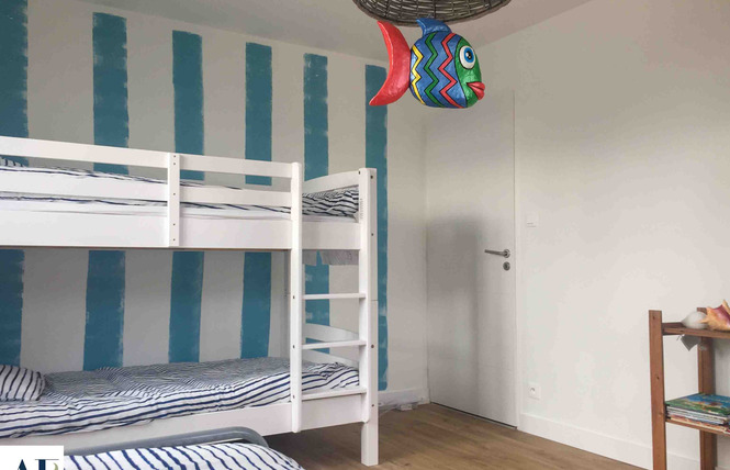Séjour avec canapé, fauteuils, table, chaises, Bureau Cuisine américaine équipée - Chambre orientation sud ouest vue sur jardin avec 1 lit de 180, couette, bureau, (pas de volets rideaux occultants) placard avec penderie étagères, salle de douche, douche, double lavabos wc - Chambre enfants sur rue avec rideaux occultants et volets avec 3 lits de 90 dont un superposé, couettes, commode, placard avec penderie et étagères -Buandeire avec évier - Salle de bain, baignoire, lavabo, commode - wc indépendant - Chambre sur rue avec volets, 2 lits de 80, couette, placard avec penderie et étagères, lit bébé parapluie -